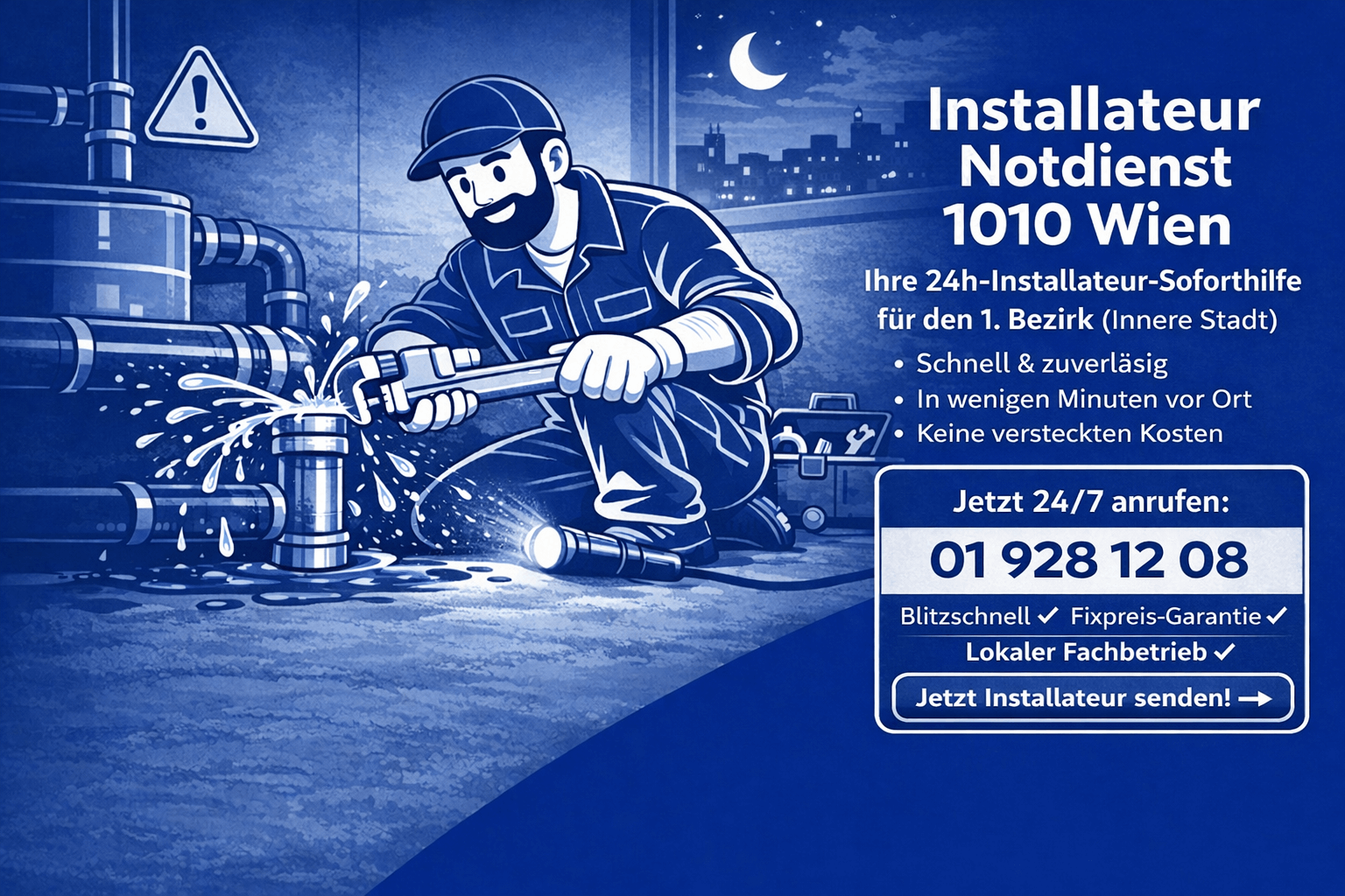 Kurzfassung: Ihr Installateur Notdienst 1010 Wien Innere Stadt ist rund um die Uhr einsatzbereit â egal ob Rohrverstopfung, Wasserschaden oder Heizungsausfall. Rufen Sie uns sofort unter 01 928 1208 an, wir sind schnell vor Ort und lösen Ihr Problem zuverlĂ€ssig!